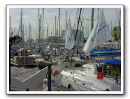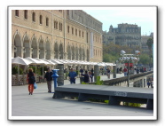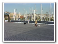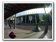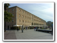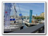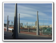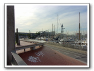 船のマストを意識した?柱が並ぶ向こうにコロンブスの像が見えます。